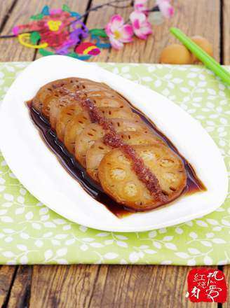 7:将玫瑰糯米藕切片,浇上酱汁就趁热吃吧