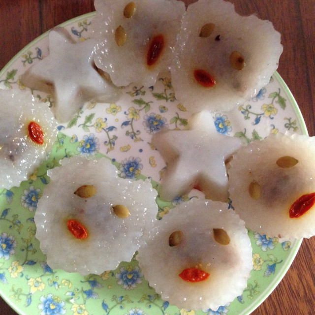 5:填上剩余西米,表面做装饰,水开后蒸30分钟