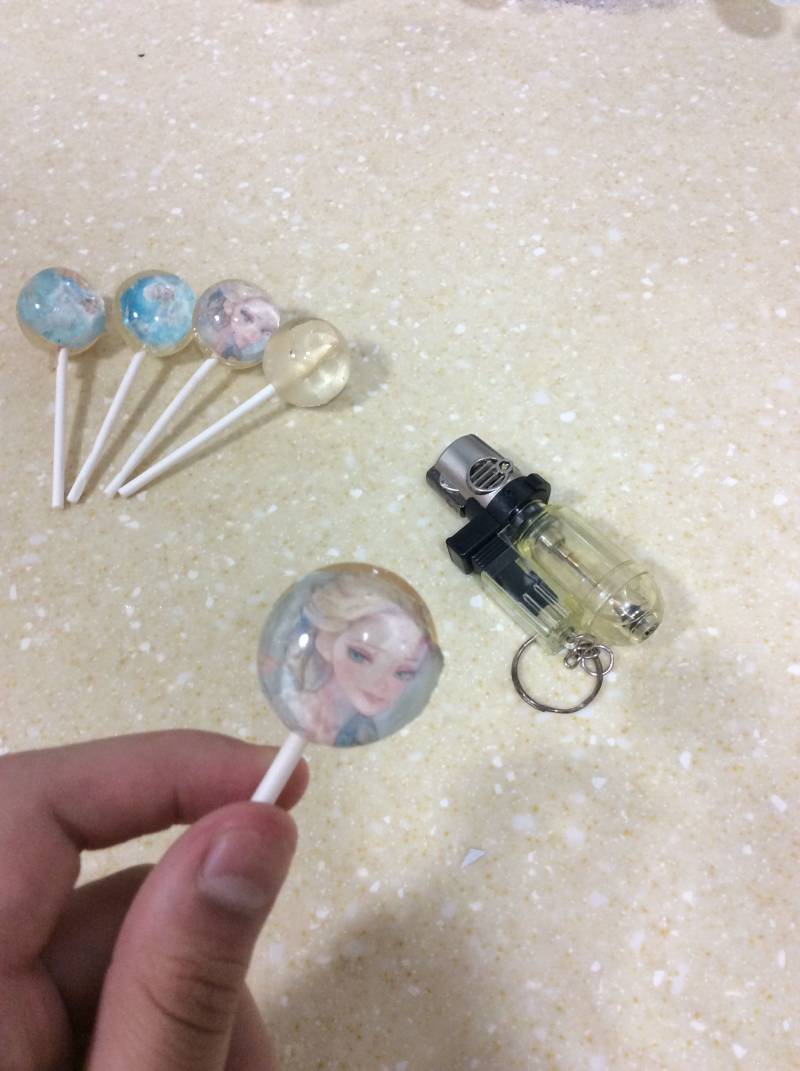 9:另一边也是如此,5分钟后插入糖棍,另一边放入糯米纸