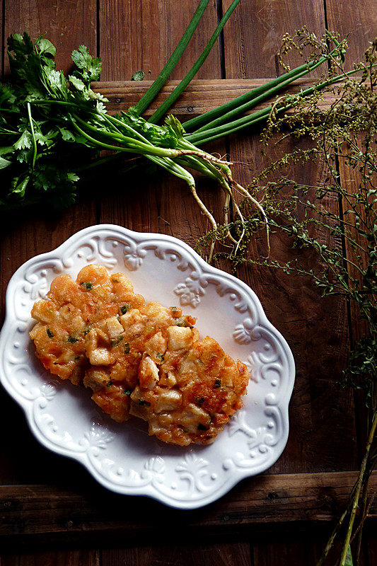 XO酱煎鲜虾山药饼