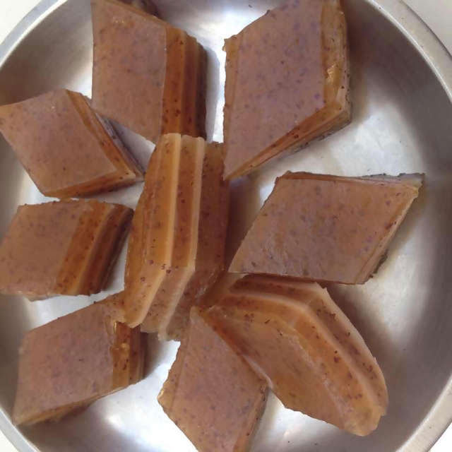 9:蒸好后关火,焖几分钟,凉了之后放入冰箱冷藏一会儿,口感会更好。凉了之后跟容易脱模。