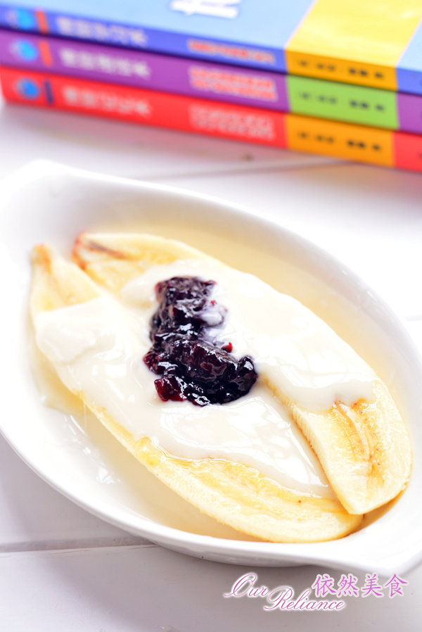 1:食材香蕉2个酸奶适量丘比蓝莓果酱80g