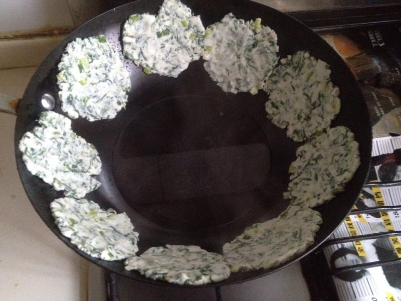 14:做葱油粑粑的勺子中间有个凸起部分,所以不需要另外在粑粑中间戳洞。