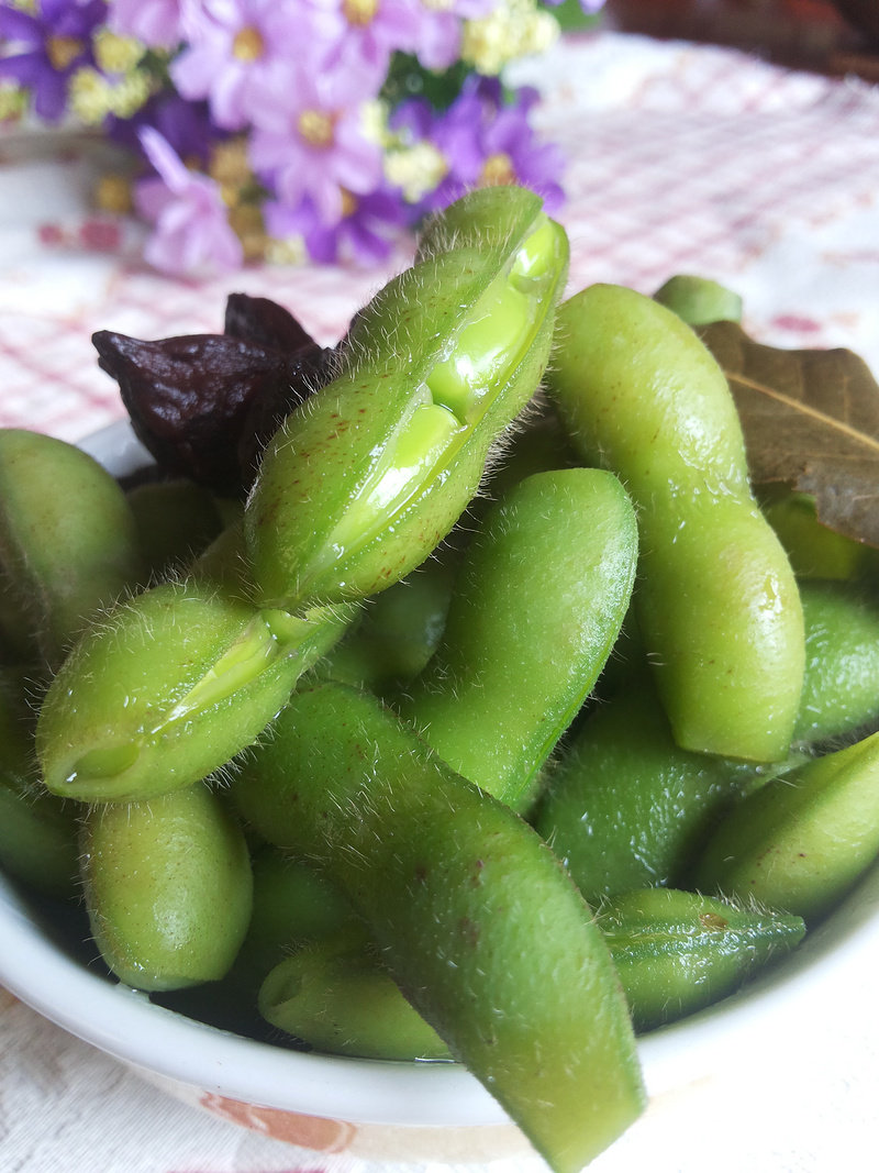 6:关火,毛豆先不捞出,继续泡在汤中,凉后捞出食用。如果能浸泡在汤中数几小时再食用,味道更棒