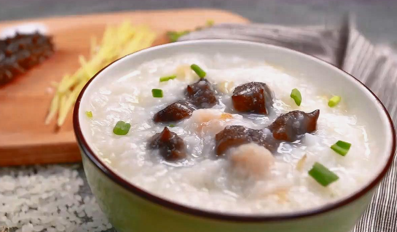3:当粥煮至自已喜欢的程度,加入青菜搅拌均匀煮沸,再加入海参略煮即可食用。