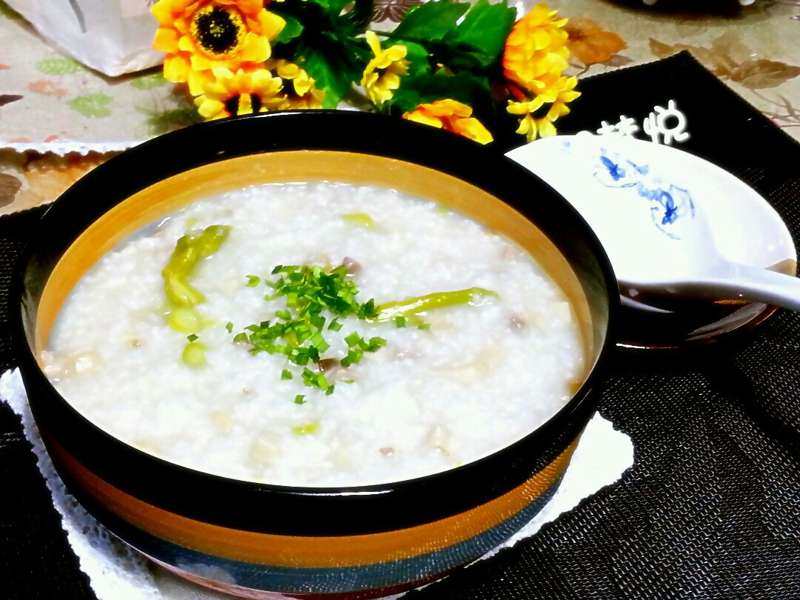 1青菜我用的是奶白菜,其它喜欢的青菜也可,各种海鲜都可以入粥,只要它够新鲜。2如果没有剩米饭,就用略泡过的大米,更香哦!