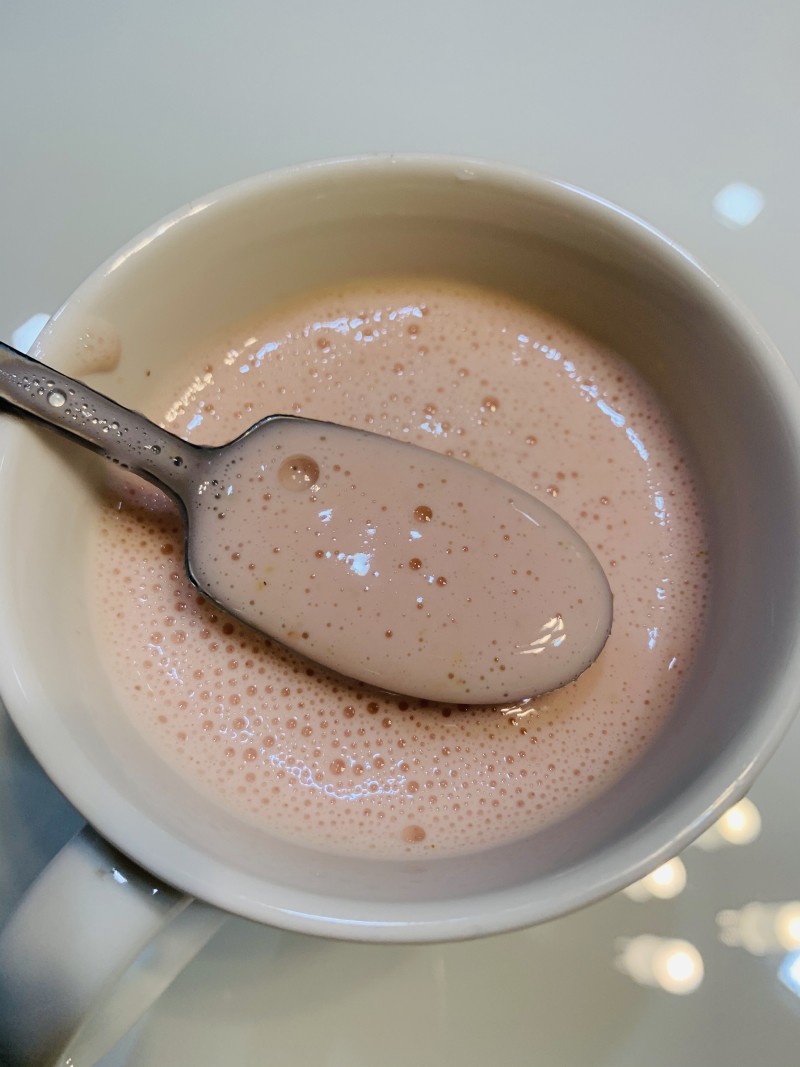 3:搅拌均匀,待冲泡好的牛奶冷却到42度以下再放菌粉,并搅拌均匀。
