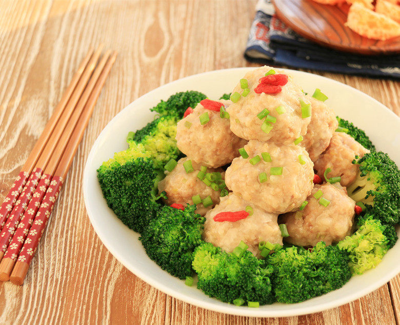 11:将西兰花和肉丸摆好,浇上烧好的芡汁即可。