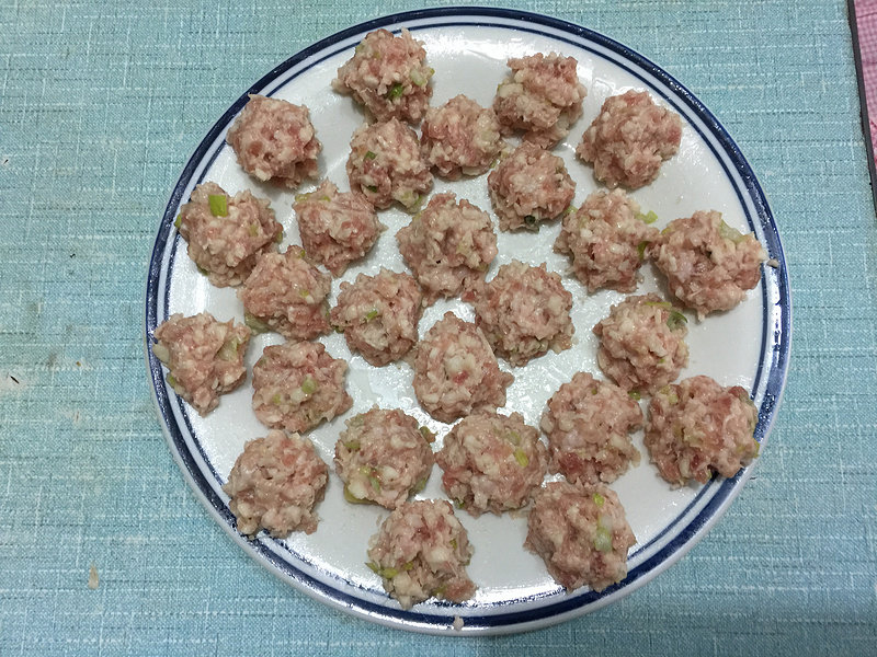 3:将搅拌好的馅料用勺子整成圆球放入盘子中,将盘子放入蒸锅蒸15分钟。