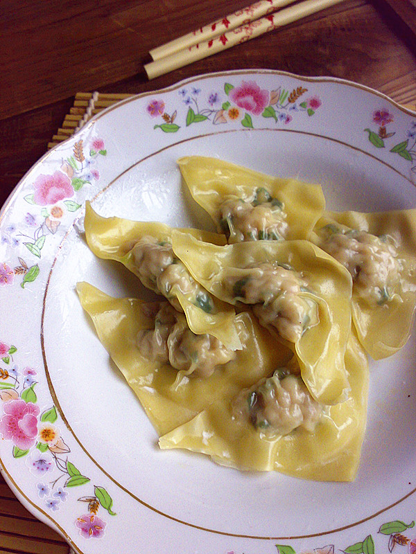 猪肉末适量;马蹄末适量;馄饨皮适量;
