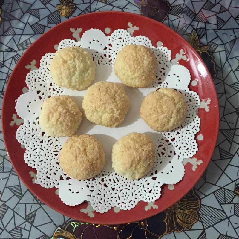 1.粉类先混匀,以免后面加入蛋白中之后难以混匀;2.蛋白和糖一起搅匀即可,不需要打发的哦~3.拌匀的面团比较粘,最好戴一次性手套操作,另外如果有多余的椰蓉,最好在搓圆的面坯外面再裹一层啦~
