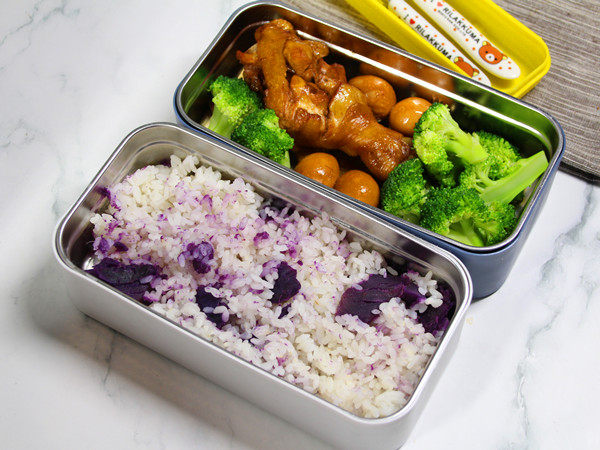 大米3杯;紫薯1根;鸡腿3只;西兰花100克;鹌鹑蛋10只;