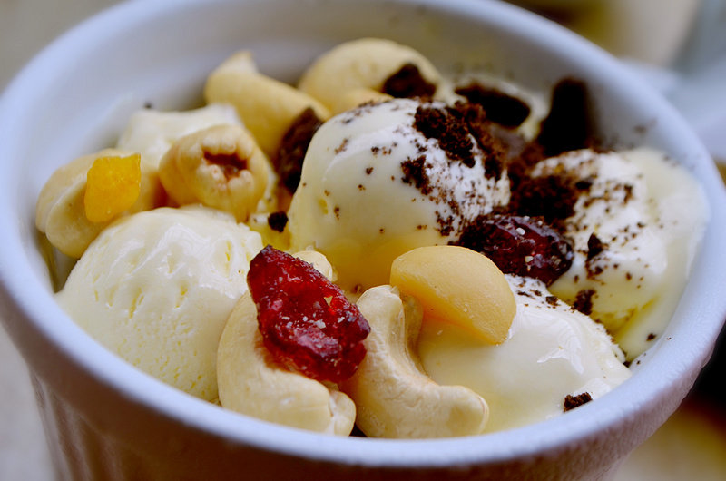 可以将巧克力换成果珍、蓝莓酱、草莓酱等等,就会做成各种口味的冰点。