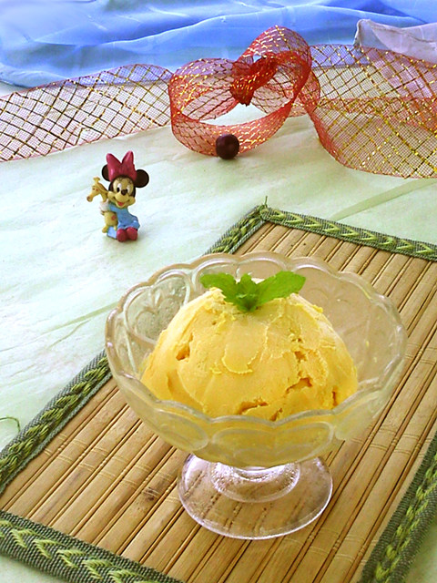 牛奶250克,;淡奶油200克;蛋3个;芒果3个;柠檬1/2个;糖80克;玉米淀1匙;