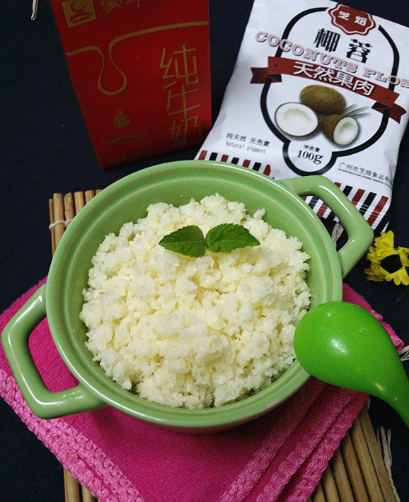 白砂糖10g;椰蓉8g(装饰);牛奶10ml;