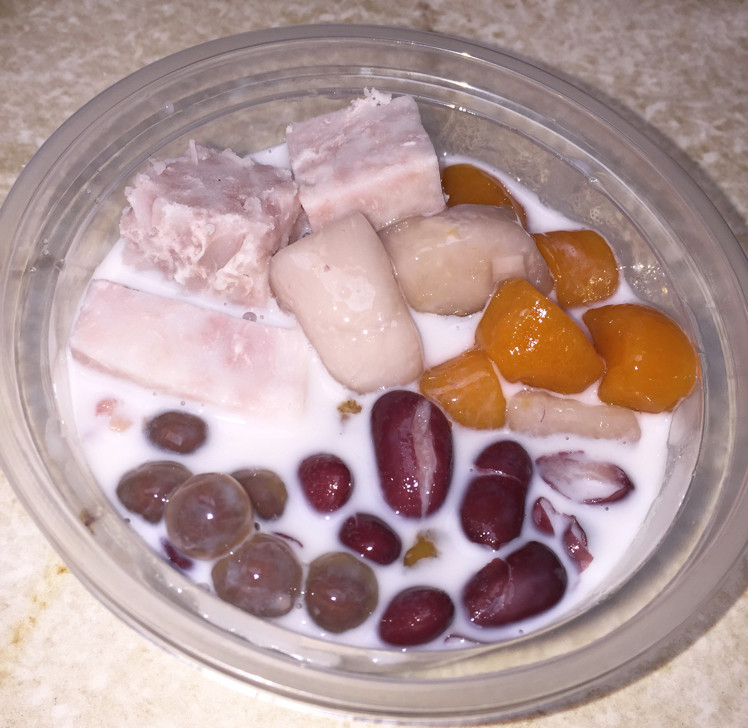 6:好了我加了红云豆、黄桃罐头、旺仔牛奶,还放了点自己做的腌柠檬,口感很酸爽,我想要有点酸结果变成有点苦。。。所以还是不要放腌柠檬了,建议放炼乳好吃Y(^_^)Y