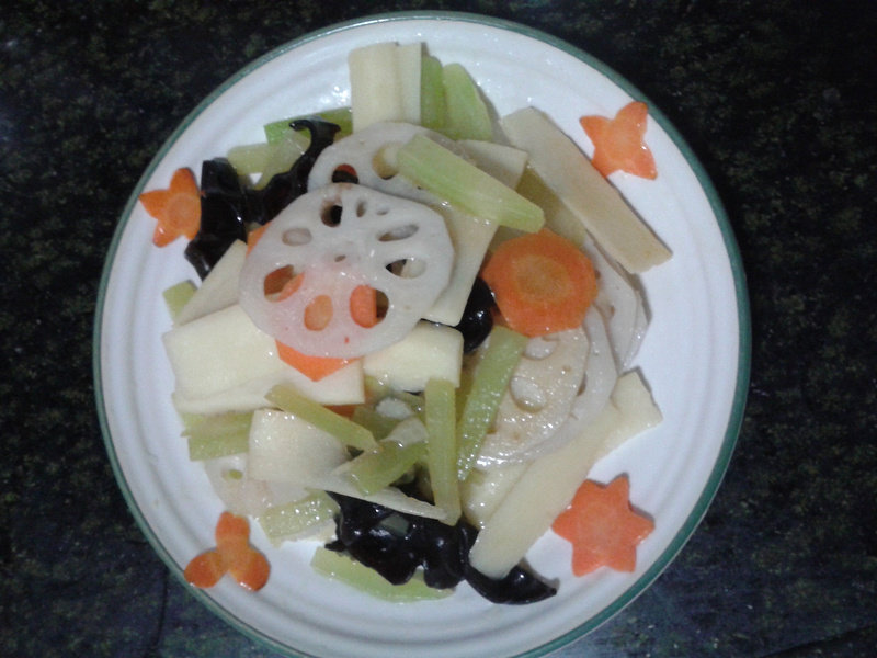 莲藕适量;木耳适量;红萝卜适量;淮山适量;莴笋适量;
