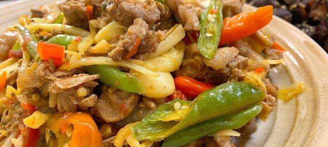 九、定型:将炒好的鸭肉和子姜定型。
