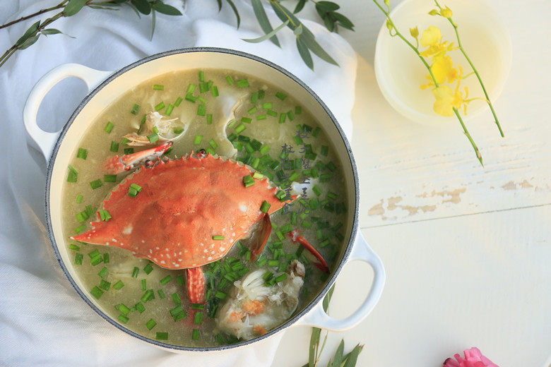 8:韭菜切小段,出锅后撒上韭菜段即可!韭菜一定要出锅后在放入,不要与螃蟹一起煮!