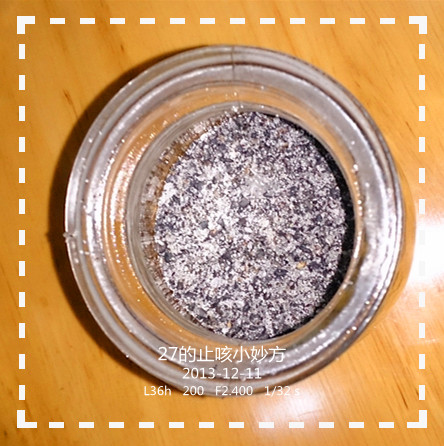 1:方法一:(对于感冒引起的干咳现象)食材:生的黑芝麻三钱,冰糖适量。(这个是一次性的量)做法:把一勺黑芝麻和适量的冰糖放在一起磨成粉末,每天起床后,空腹调水喝下,坚持三天左右。在这期间,少吃辛辣的食物,少吃鱼类。