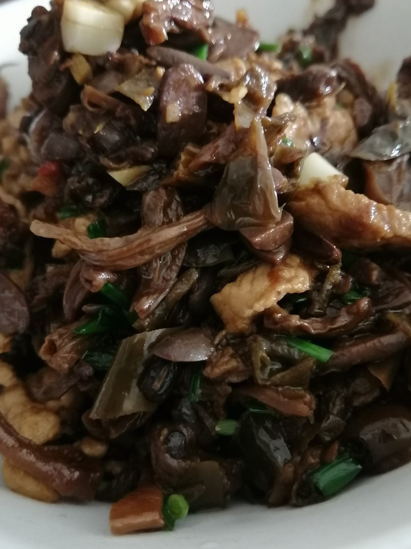 1:碎菜是用辣椒、茄子、虹豆、等各种晒干的蔬菜,加盐加豆豉,放在坛子里腌制一年。坛子一打开,香味扑鼻。碎菜软而不湿有光泽。