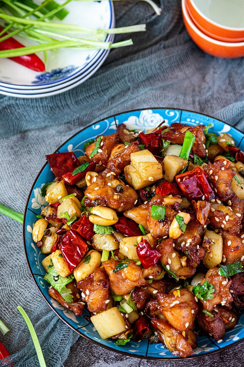 一、因为在烹调的过程中除在腌制肉中只有这一步骤可以加调料,在余下的步骤中就没有机会加调料了,所以,在腌制的时候可把味一步调到位,甚至可以稍咸些,因为还要焯一焯水;二、田鸡腿要返炸过才有嚼劲才香;三、如果不想同时开两个锅的,可以炸好田鸡腿后再把花椒和辣椒煸香,这个过程不可省,煸过后花椒辣椒香味才能发挥得更好;四、在步骤9时倒入全部材料爆炒,炒的时间不长,不足以把花生炒熟炒香,所以花生要预先炒过。