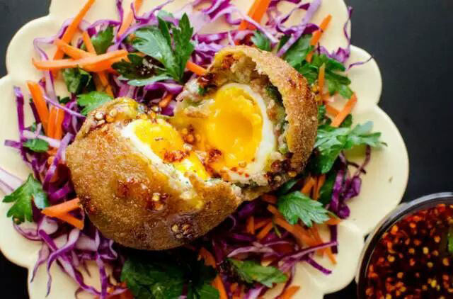4:4.平底锅内放入适量植物油烧热,放入鸡蛋小心煎制,直到外壳酥脆。