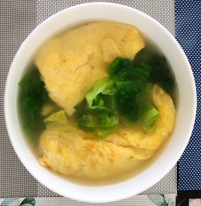 米饭(稀粥也可以)适量;生菜适量;鸡蛋一个;肉汤适量;葱少许;