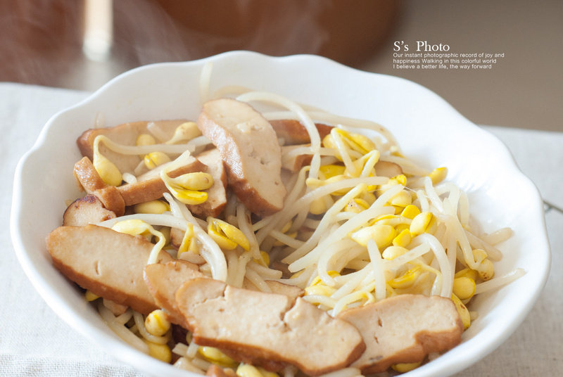 2:黄豆芽,把根摘掉,用自来水泡半小时,洗干净,沥干水份备用