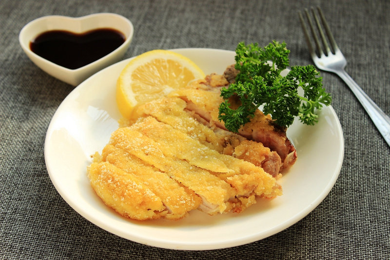 油1小瓶;盐1小盒;黑胡椒1小盒;面粉1小袋;鸡蛋1只;面包屑1小袋;辣酱油1小瓶;柠檬四分之一个;