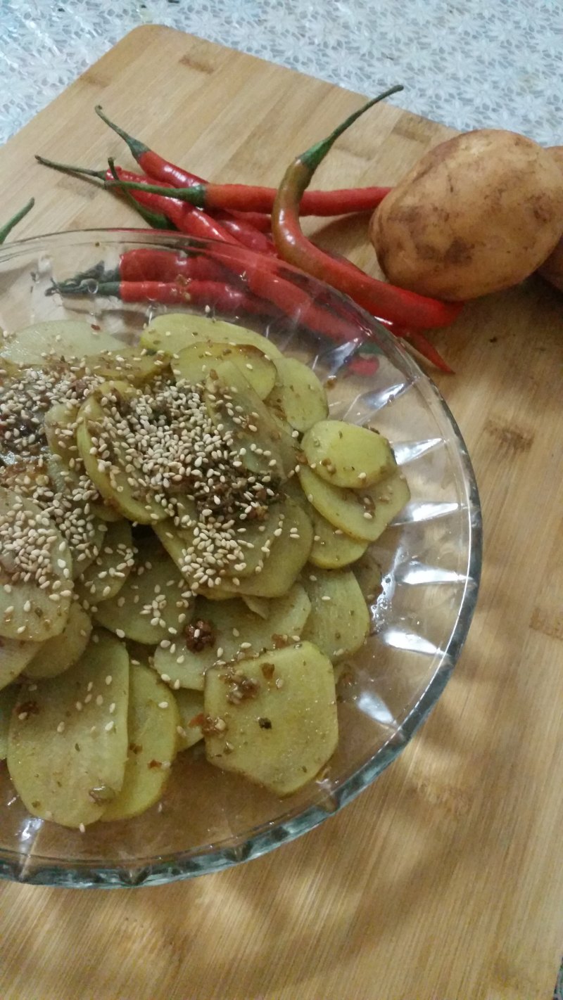 一定要把土豆切薄一点,好蒸,不然要蒸很久。