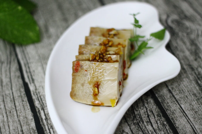 12:按自己的喜欢,切块、切片、切条均可,可直接食用,亦可蘸着蒜醋汁食用。