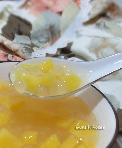 10:加半个芒果装饰香浓的芒果西米露就做好了。