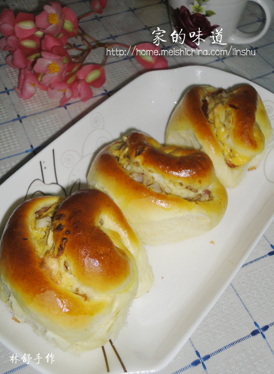 9:发酵足够大的面包卷刷上蛋液,烤箱预热190度,烤25分左右。