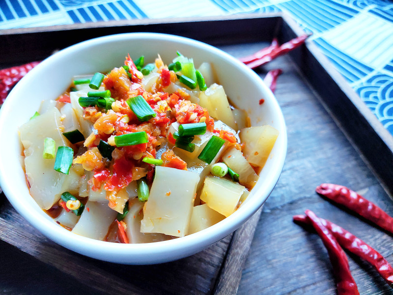 1、因为我家剁椒里有辣椒、姜、蒜、萝卜干,所以比较省事。没有剁椒的,就直接切点姜末、蒜末、小米椒,萝卜干或榨菜末都可以。很多地方超市有那种豌豆凉粉,其实吃法是差不多的。2、调味随自己喜好。