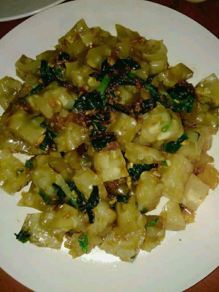 1:把猪皮冻从容器中倒在案板上,切块,备用!