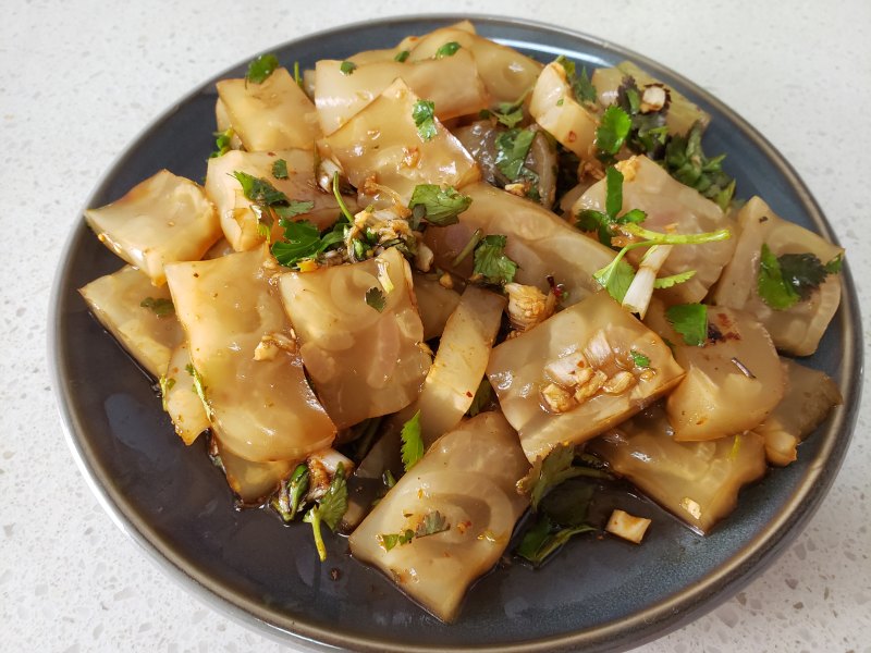 个人觉得凉皮蒸的少许厚点好吃,酱料和配料可以随意搭配