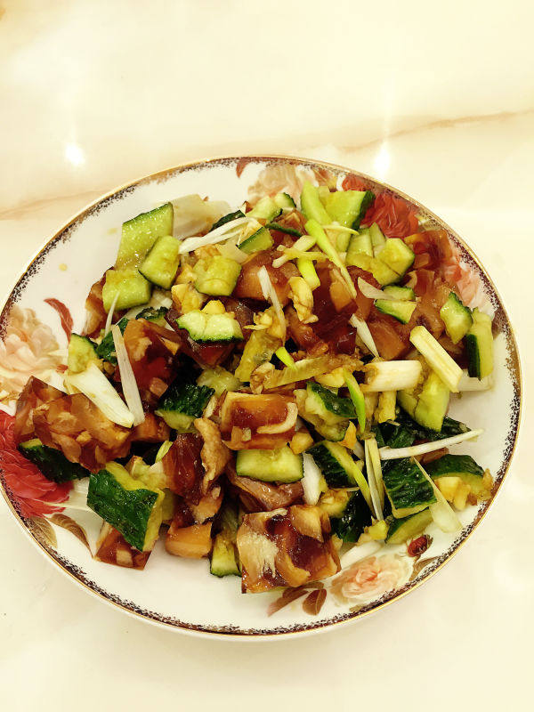 15:放上点黄瓜丝,花生米,和切好丁的面筋