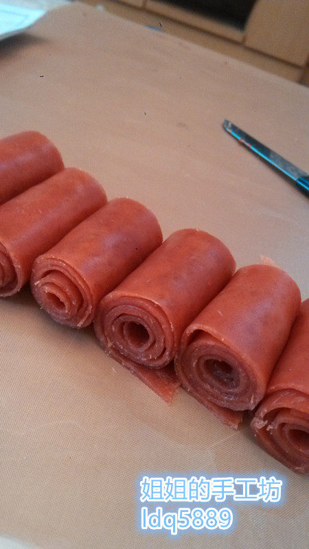 11:光滑面朝下,卷成卷,现在看上去就是一个超大根的果丹皮。