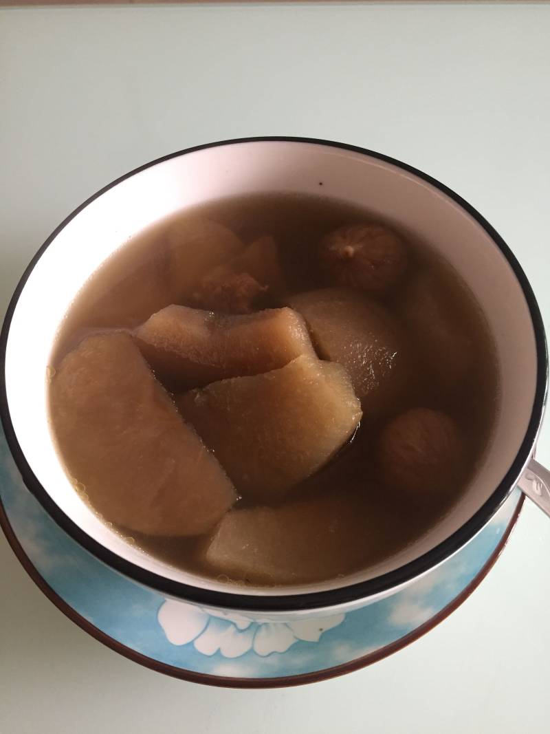 6:加入梨,大火烧开,转小火煮二十分钟。