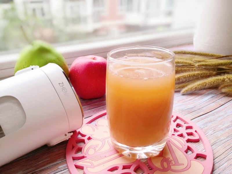 刚榨好的果汁是米白色的,但时间一长颜色就会偏向红色,是因为苹果极易被氧化,但不影响口感。
