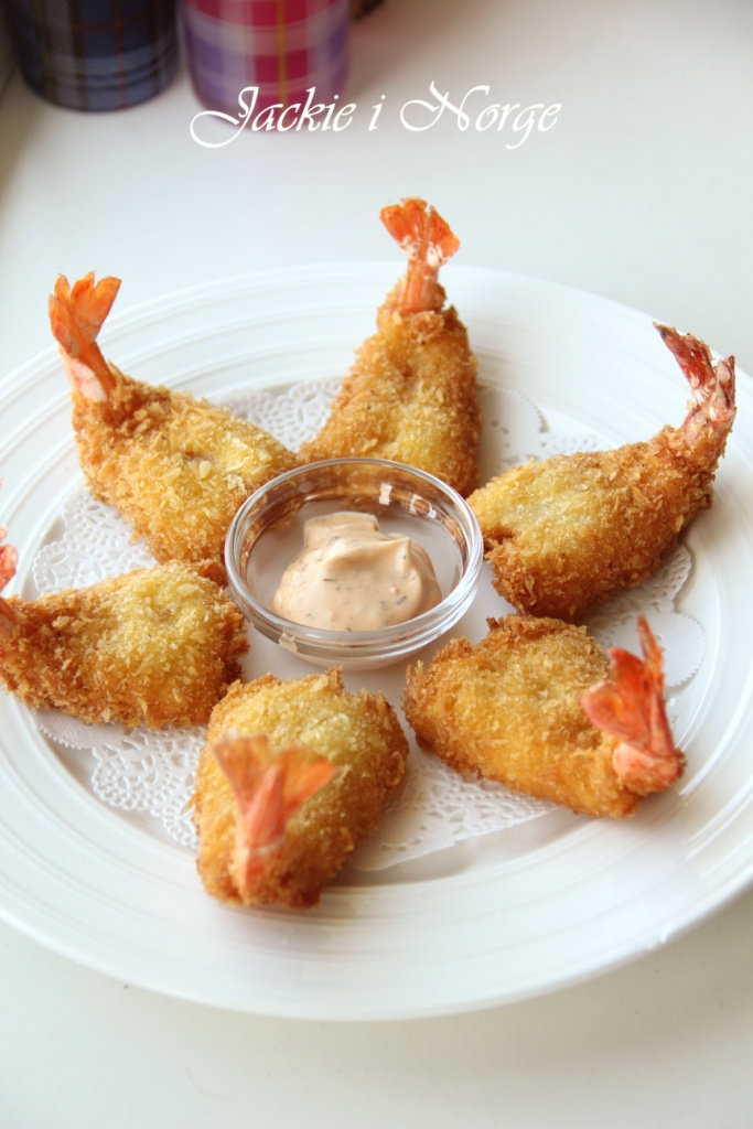 15:全部上色后即可。(虾很容易熟,所以快炸面包糠金黄即可。)