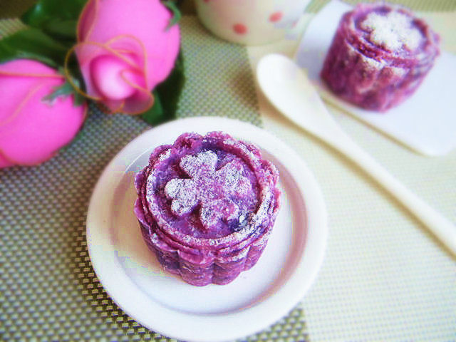 1:紫薯蒸熟后趁热辗成泥。
