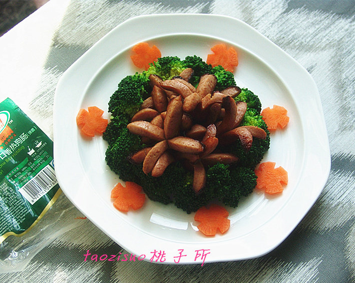 热狗肠适量;西兰花适量;胡萝卜适量;