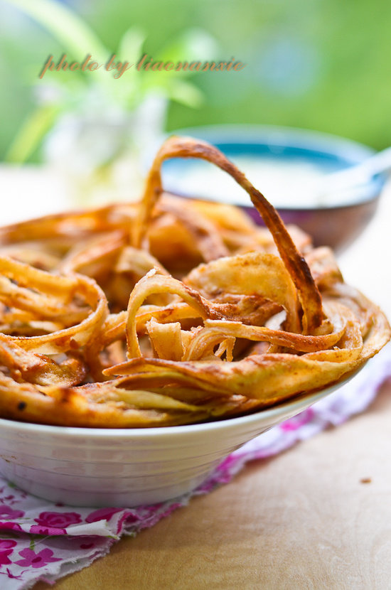 9:出锅后将饼抖一抖就会散开,一根根,一片片吃吧。