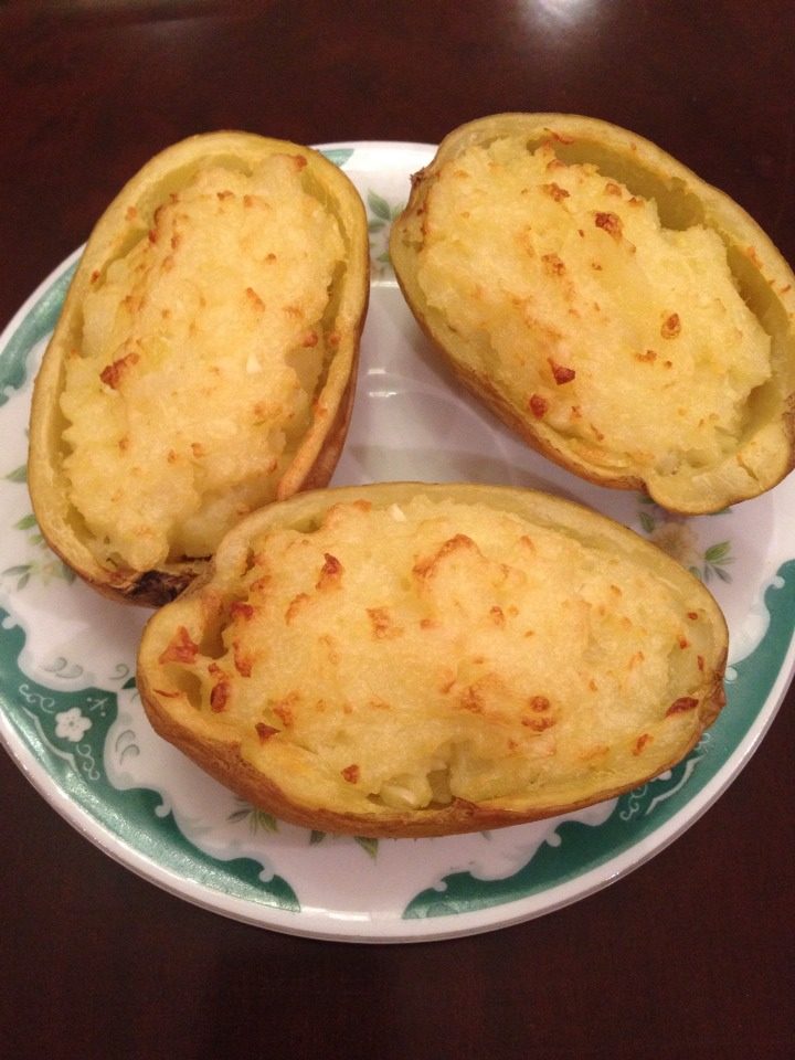 3:把土豆泥再填入土豆皮中,放入烤炉中,180度,烤10分钟。