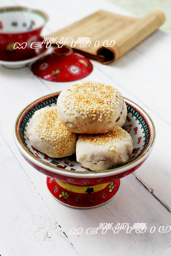 12:锅上火,将有芝麻的那面冲下,依次摆在锅中,小火烙制,临出锅前,用大火烘一下,即可出锅