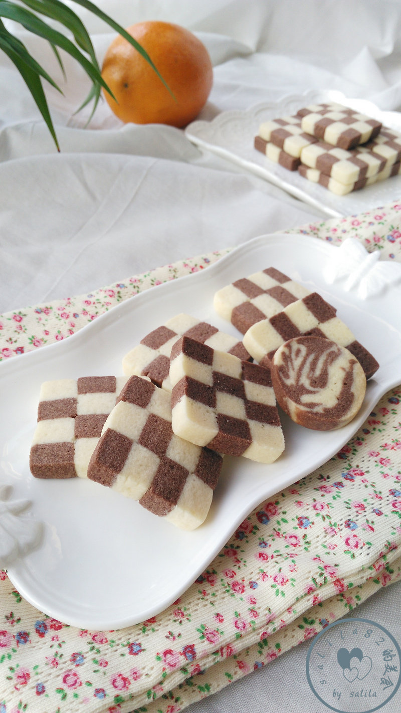 5:去掉边沿,切成规则长方形。(边角料可以混合在一起整理成圆柱形再切片,这样就成为大理石纹曲奇了)