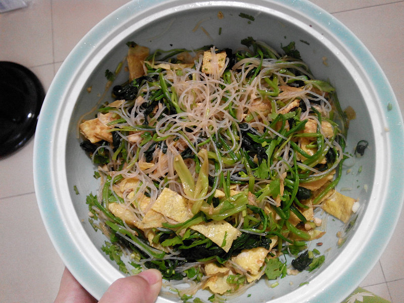 7:放入凉粉、食盐再煸炒几分钟,盛出