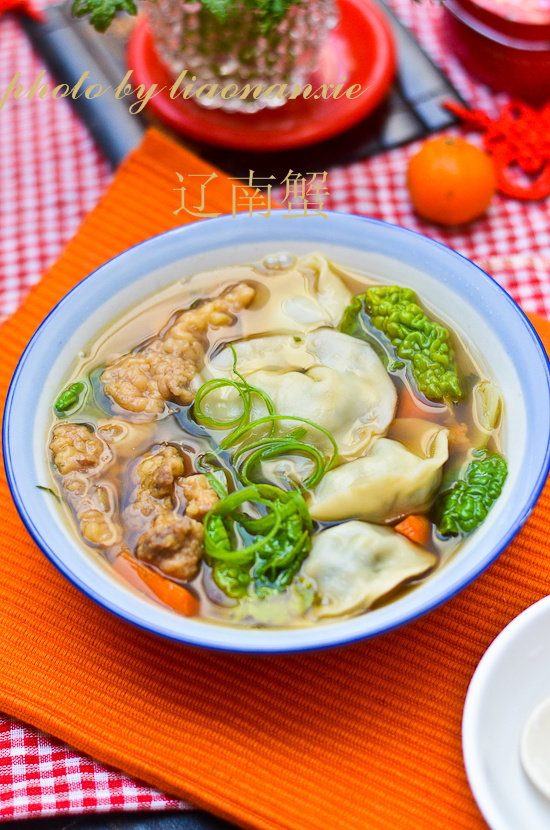 倒第二次冷水时,就可以调汤料了,有什么不喜欢吃的调料,可以不加,大白菜很鲜的!元宝饺子很可爱,很健康多吃点哦!